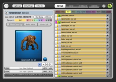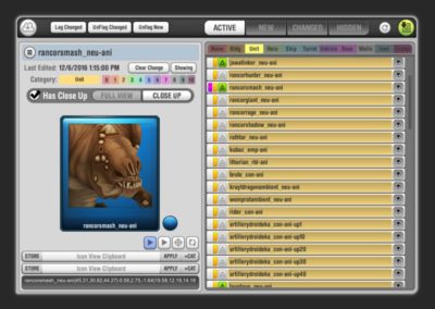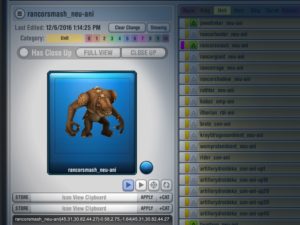 Developed to allow the art team to align and setup up optimal camera views for 3D display of in game assets.  Using the in-game asset bundles, it previews and allows for zooming and aligning the animated models.