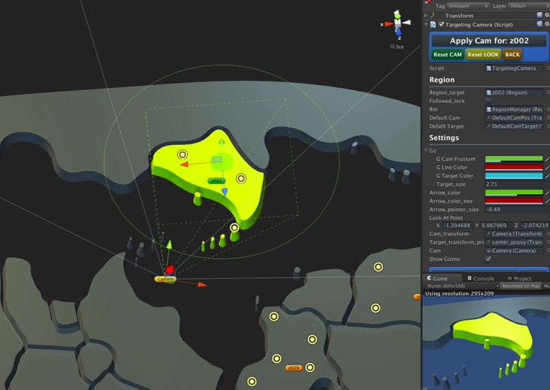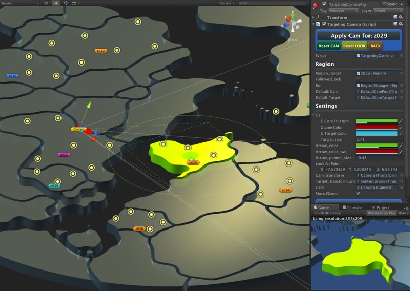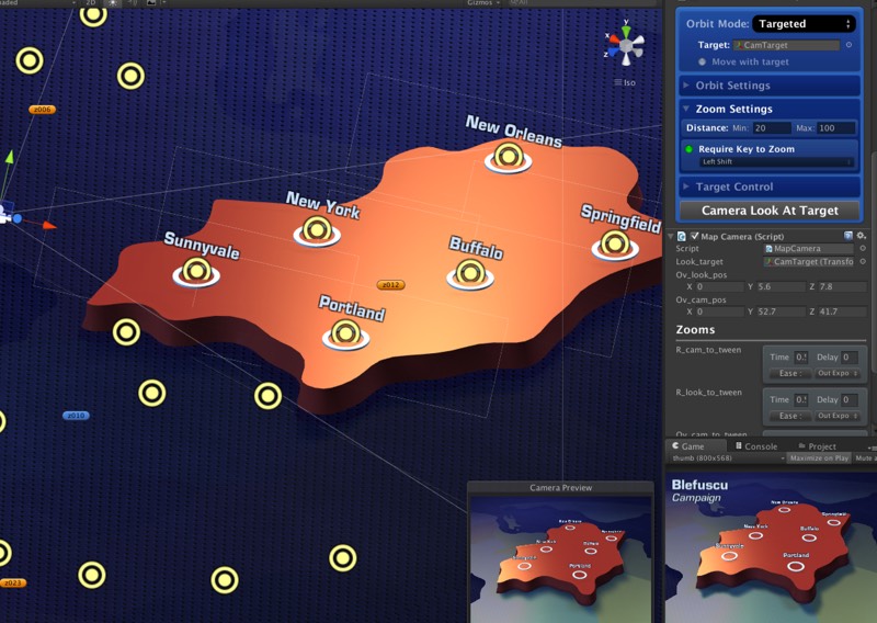 Used as both a prototype and camera animation setup tool.  Editor tools let art team set up and record camera push in and and angles.