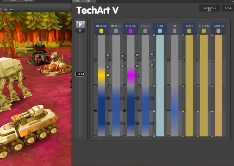 A companion to the tool for the pipeline, takes all the data and packages them into a assebundles for game consumptions.   The concept was designed by our shader guru as an hack-a-thon project and became a feature with a variety of uses.   This tool makes it a breeze for artists to refine as they build.